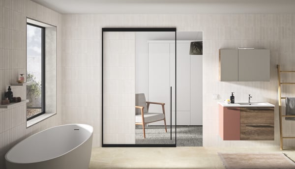 Ver nuevos toallerosDoccia presenta un conjunto que combina mampara de ducha y armario de cristal, pensado para ofrecer una solución práctica, resistente y visualmente coherente.