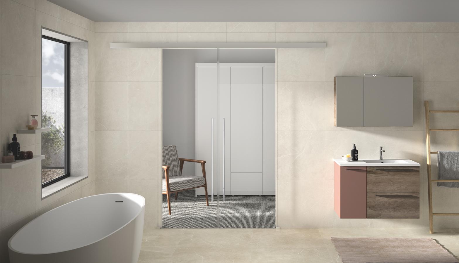 Doccia presenta un conjunto que combina mampara de ducha y armario de cristal, pensado para ofrecer una solución práctica, resistente y visualmente coherente.